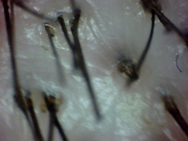 Bei mir schätze ich mal 50%-60% Haaren stecken noch in den Kanälen da die nur Oberflächlich abgebrochen sind, man sieht im Mikroskop kleine schwarze Punkte.