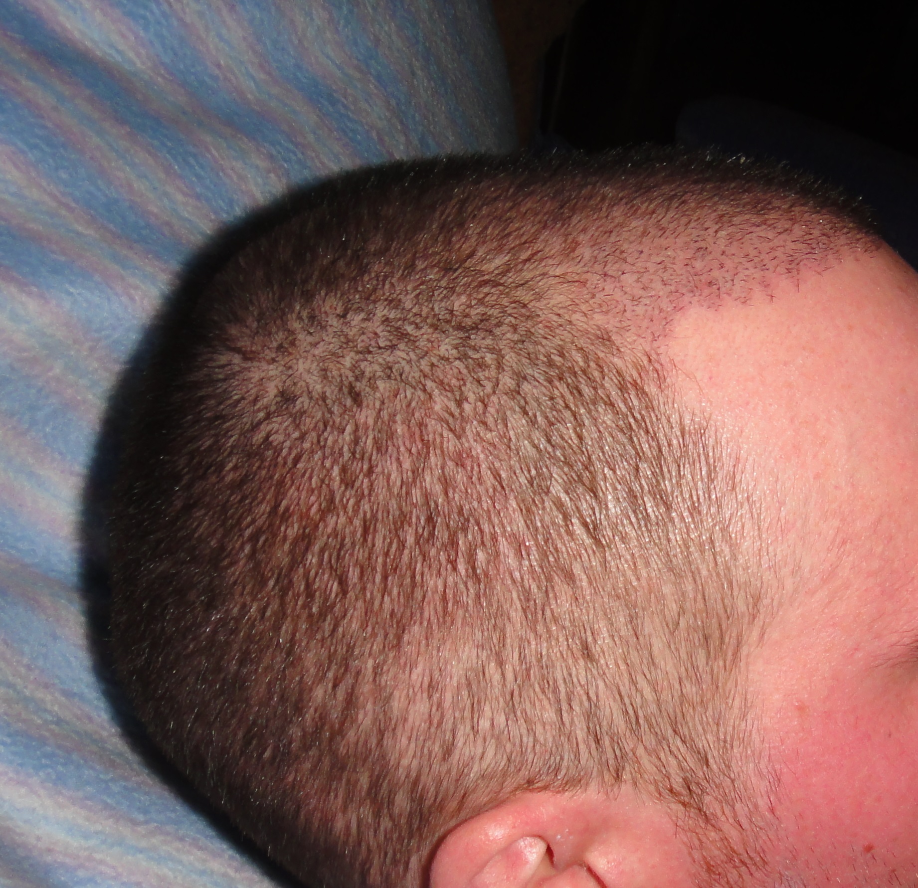 Viel zu berichten gibt es nicht, in diesem Stadium ist nichts neues angewachsen, lediglich sind manche sofort angewachsenen Haare etwas länger geworden...