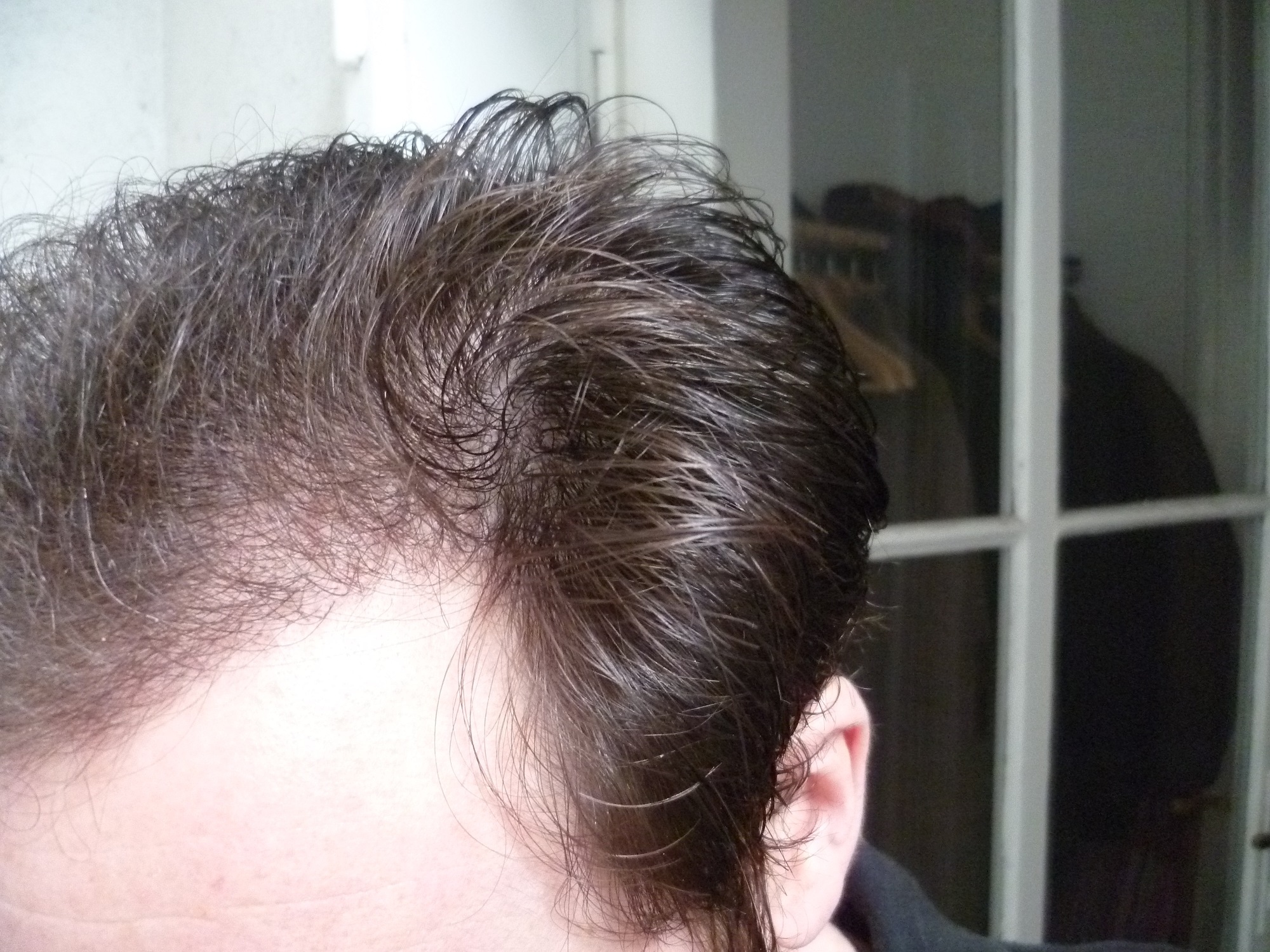 Kemmt man die Haare nach hinten oder vorne ist der Dichteunterschied nicht mehr ersichtlich (zumindest für das ungeübte Auge), wenn ich sie kurz tragen würde ebenfalls nicht. Stehen Sie ab sieht man den Unterschied schon von ein paar Metern aus, da sich das Licht dann auf der Kopfhaut spiegelt. Aber das lässt sich ja vermeiden...