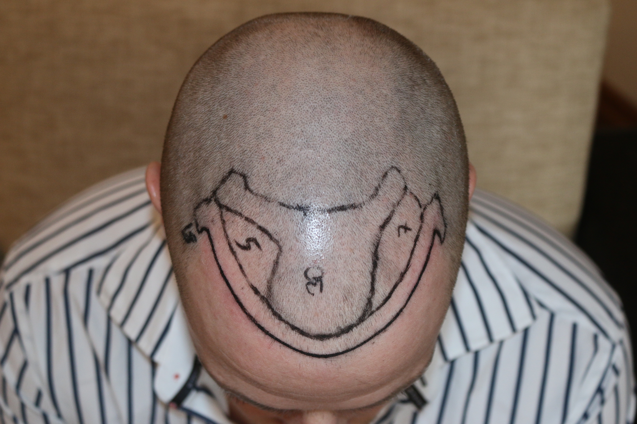 Geplant sind die GHE und Verdichtung des Vorderkopfes. Nach ausführlicher Beratung gestern, und anzeichnen von ein paar Haarlinie mit anschließender Auswahl sind wir zu einem OP Plan von ca. 2100 Grafts gekommen.