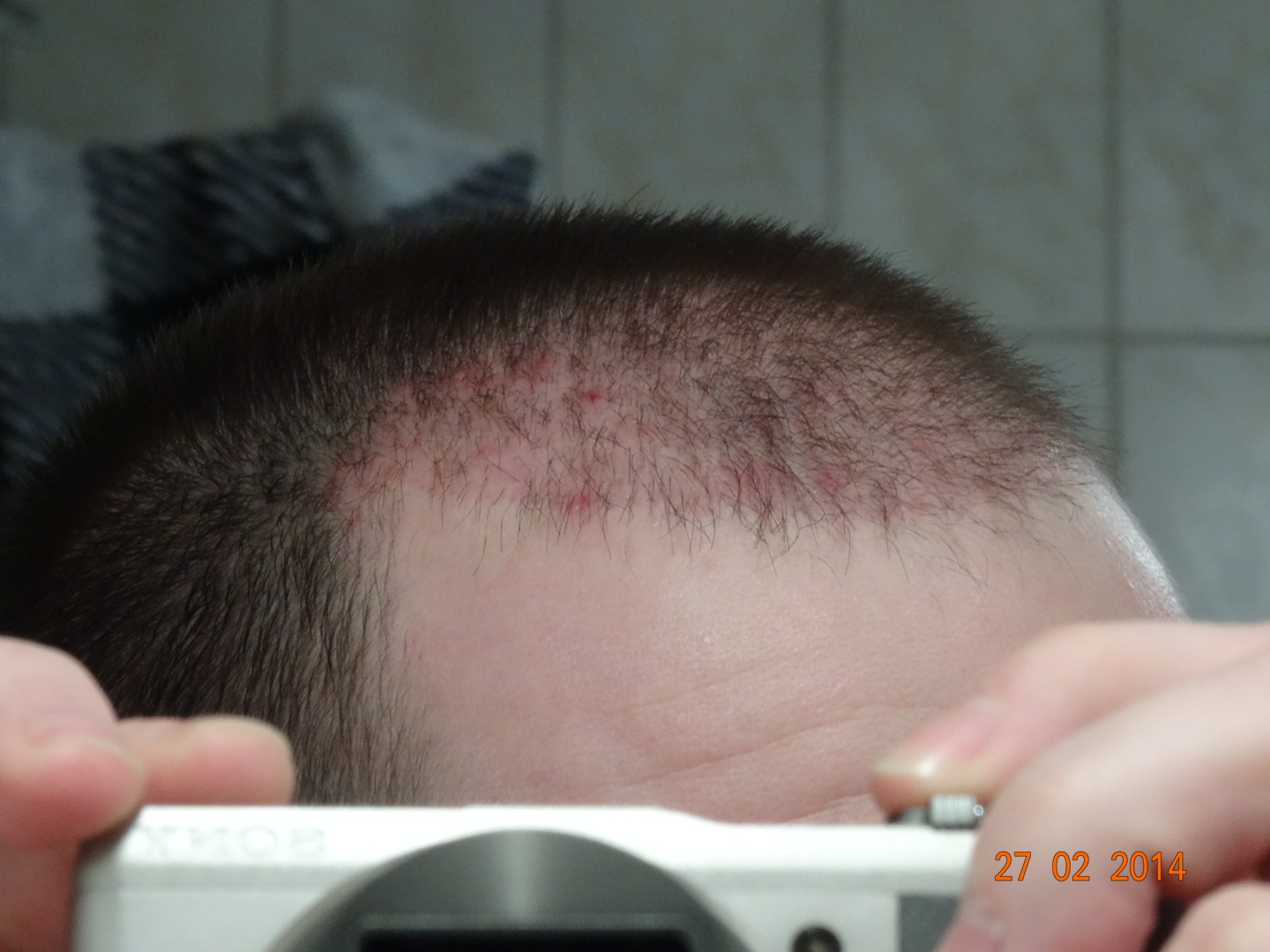 Ist zwar noch nicht ganz weg aber deutlich besser. Was es nun war kann ich nicht sagen. Es hatte jedenfalls bisher keinen Einfluss auf die dort eingesetzten Haare, die sind nämlich noch da. Der Haarausfall ist aber langsam schon zu merken und an einigen Stellen ist es schon wieder lichter geworden.