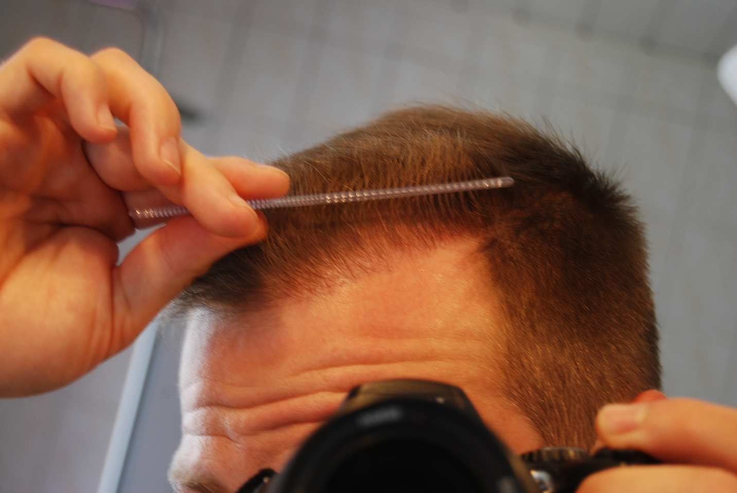 So, nach langer Zeit nun auch mal wieder etwas aktuelles von mir. Ich bin mit dem Verlauf bisher sehr zufrieden. Ich sehe noch leicht, dass die Dichte etwas weniger als beim Resthaar ist, bin aber so weit schon echt zufrieden. Es kommen immer noch neue Haare, so dass ich zuversichtlich bin, noch eine bessere Dichte zu erhalten.