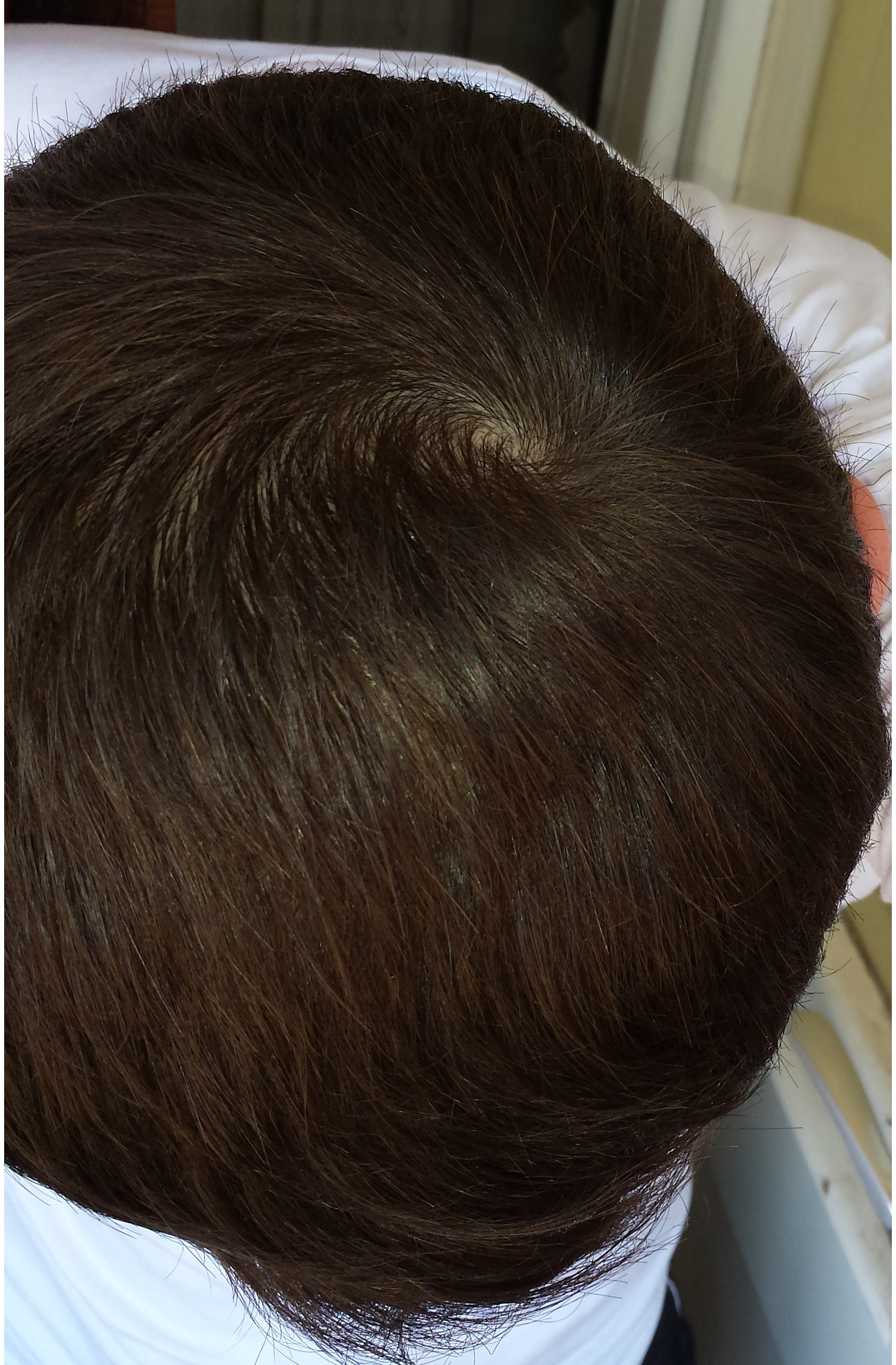 Meiner Meinung nach ist eine Ausdünnung im Tonsurbereich erkennbar. Die Einnahme von Finasterid unter 22 bis 25 Jahren bedarf meiner Meinung nach einer eingehenden Risiko-Nutzen-Abwägung, da DHT natürlich für die Mannwerdung maßgeblich ist, z.B. Bartwuchs ect, erfolgt eine Senkung des DHT ist es wahrscheinlich, dass diese Entwicklung stagniert.