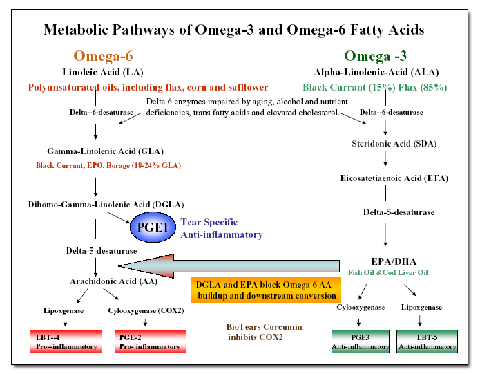 N-6 PUFA (Omega 6) -> Linolensäure -> Gamma-Linolensäure (GLA) -> Dehimmo- Gamma Linolensäure (DLGA) -> Arachidonsäure (ARA) -> COX -> PGG2 -> PGH2 -> PGE2 (oder auch PGD2)