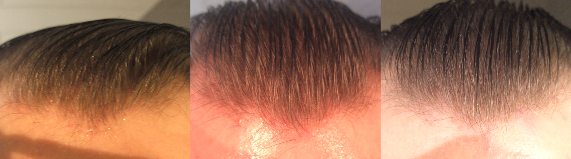 Solange wie keine signifikante Besserung auftritt, spar ich mir die aufwendige Fotodokumentation, d.h. ein Fotoupdate gibt's erst wieder wenn eine Besserung auftritt. Dass es schlechter wird, kann ich auch schriftlich mitteilen, dafür brauch ich keine Beweisfotos. Falls bis Mitte/Ende 2013 keine Besserung auftritt ists für mich sowieso an der Zeit die Haare ganz abzurasieren.