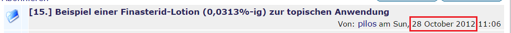 Die AGA-Behandlung ist individuell, eine Sache des "Trial And Error". Fasse dich kurz und kompakt bei Fragen... das ist meine Freizeit. Es besteht auch kein Verhältnis zu alopezie.de. ""Ich bin kein Arzt, sondern gebe hier lediglich meine private Meinung wieder; Art.5/GG.  Auf Userfragen hin erläutere ich, wie ich persönlich vorgehen würde, wenn ich mich in der selben Lage befände. Bitte stets beachten: 1) Nachmachen auf eigene Gefahr und 2) Meine Vorschläge ersetzen keinen Arztbesuch!""