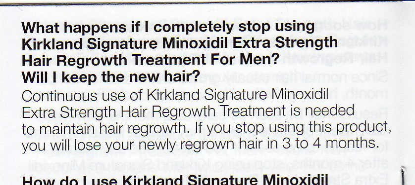 Außerdem ist die Frage nach "was passiert nach dem Absetzen mit meinen Haaren" nicht ganz geklärt. Es ärgert mich sehr, dass man von den Minoxidilanbietern diese Fragen nicht beantwortet bekommt oder die Antwort verstckt wird.