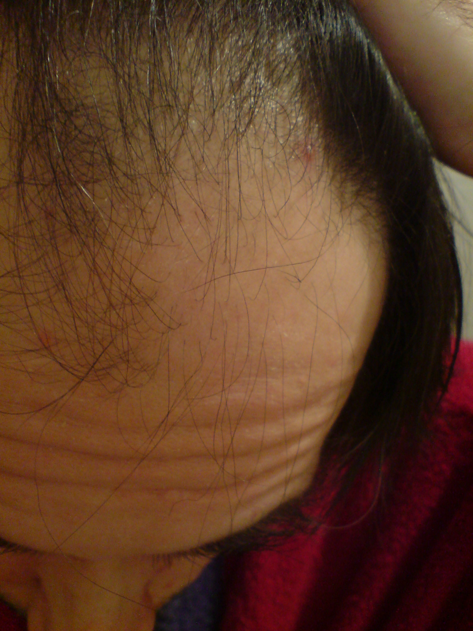 Daher wird es schwierig, Vergleichsbilder zu zeigen...zumal das "Wiederwuchspotential" auch nur sehr im Detail liegt (ca. 5mm wo früher die kindliche Velluslinie war an den Seiten/Ecken).