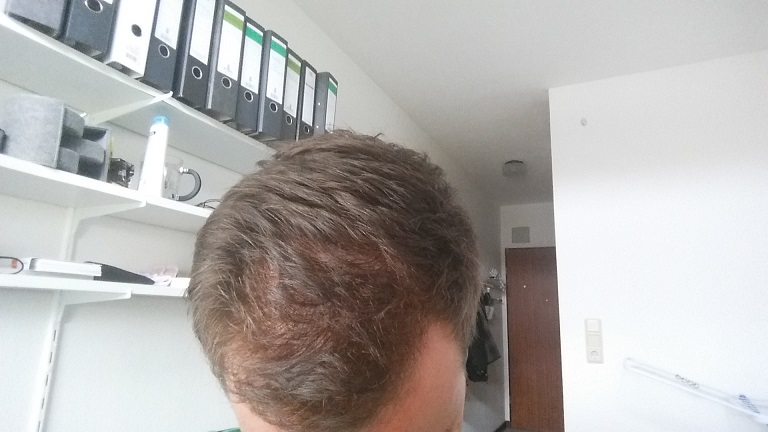 Ich bemerke keinen Haarausfall. Klar fallen mir paar Haare am Tag vom Kopf, aber jetzt nicht so, dass ich es als Haarausfall bezeichnen würde.