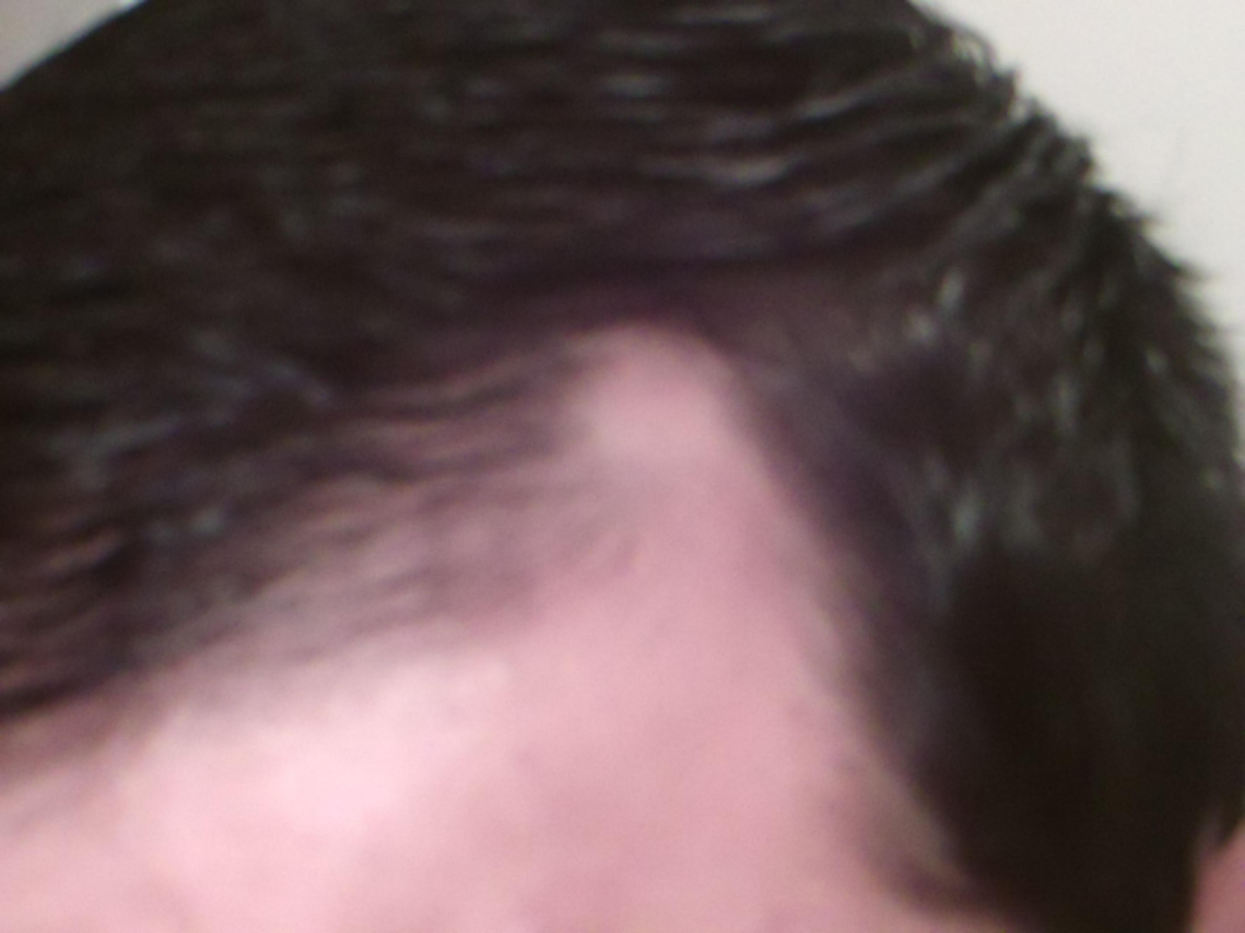 einmal an der geheimratsecke und auf dem oberkopf, rote stellen habe-...