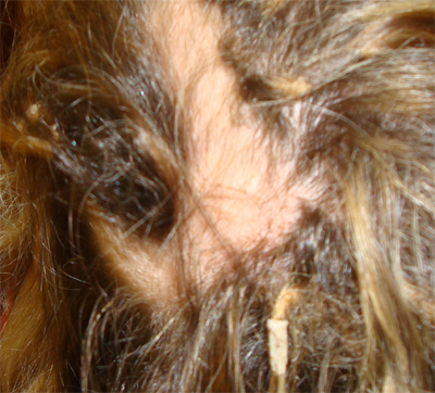 Das Haar wächst ganz schütter und langsam wieder nach, aber es scheint sich eben immer weiter auszudehnen und die Kopfhaut tut bei Druck weh.