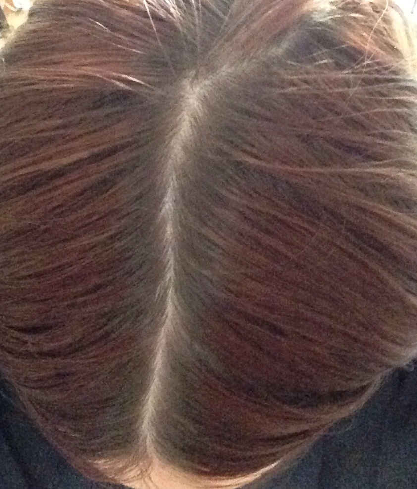 Hier mal ein Foto von meinem Scheitel. Bilde ich mir das nur ein, oder wird der auch schon breiter? Besonders hinten?