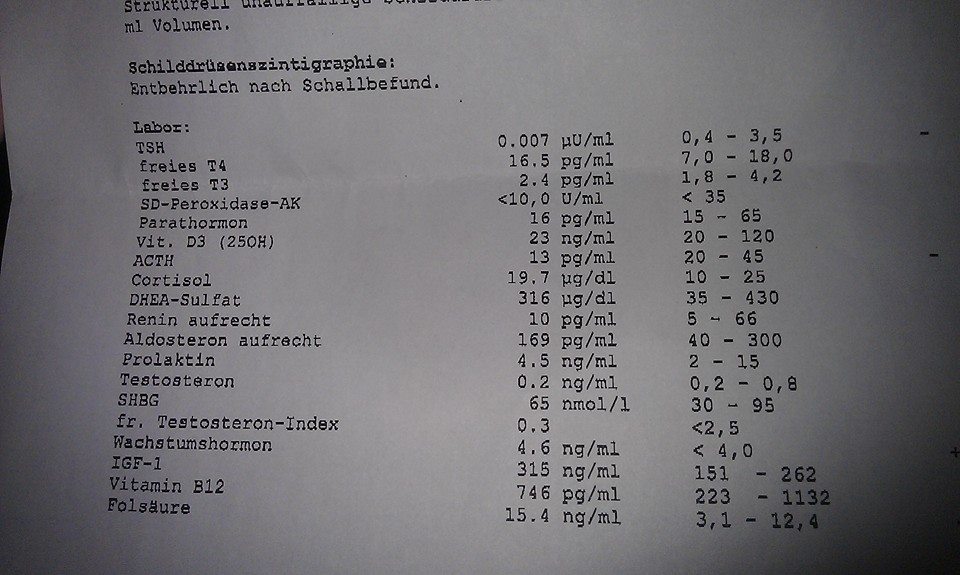 Alsoe die SD Werte waren nach absetzen der Hormone immer so, dass der tsh Wert normal war und t4 normal und t3 an der Untergrenze.