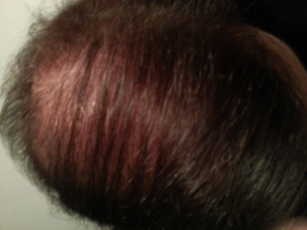 Die lichten Stellen sind eigentlich eher diffus über den ganzen Kopf verteilt, aber besonders auffällig an meinen Scheiteln (Mittelscheitel, Seitenscheitel), am Hinterkopf (insbesondere wenn ich die Haare anhebe) und an meinem grässlichen Wirbel. Geheimratsecken habe ich eigentlich nicht, aber eine hohe Stirn an der ich schon immer kleinere kürzere Härchen hatte (auch als Kleinkind schon, ich habe glaube ich so ziemlich alle Kinderfotos durchforstet, die ich gefunden habe), auch wenn ich mir jetzt natürlich einrede, dass das miniaturisierte Haare sind Rolling Eyes .
