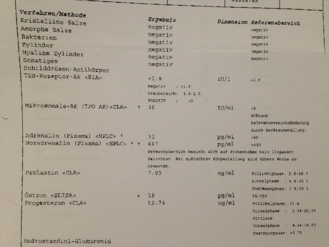 Zur SD: Naja gut, da da ja leider keine Referenzwerte sind, bin ich nur vom TSH ausgegangen (was nicht ausreichend ist) aber da der nicht wirklich gut aussieht, bezweifle ich einfach mal, dass die freien Werte gut sind, ich kann mich irren, klar, aber es wäre wirklich wichtig, wenn du die Referenzbereiche rausbekommen könntest.