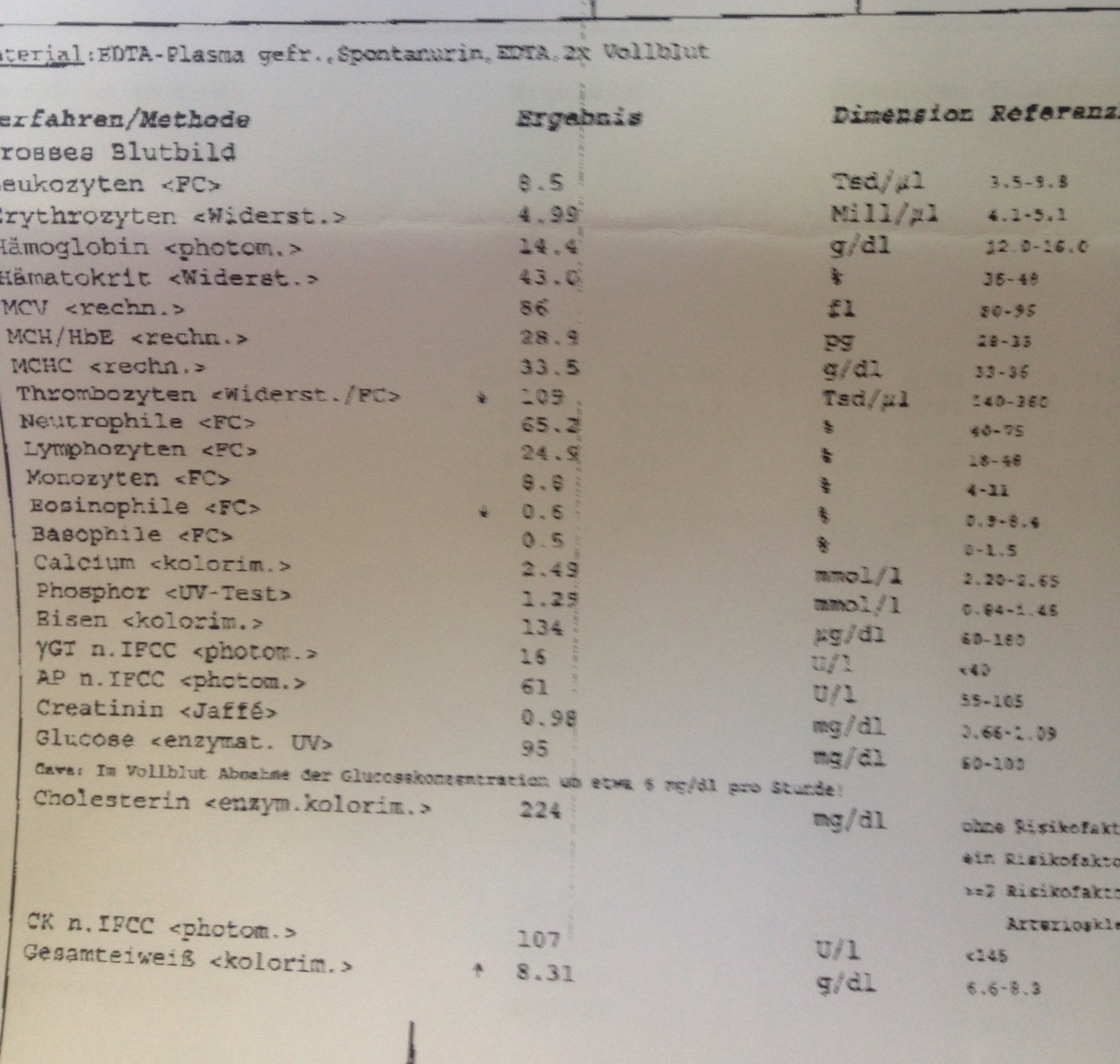 Hab extra gerade die Referenzbereiche in meinem Labor gesucht, aber das sind ganz andere Einheiten... echt blöde, kommst du denn da irgendwie ran?!