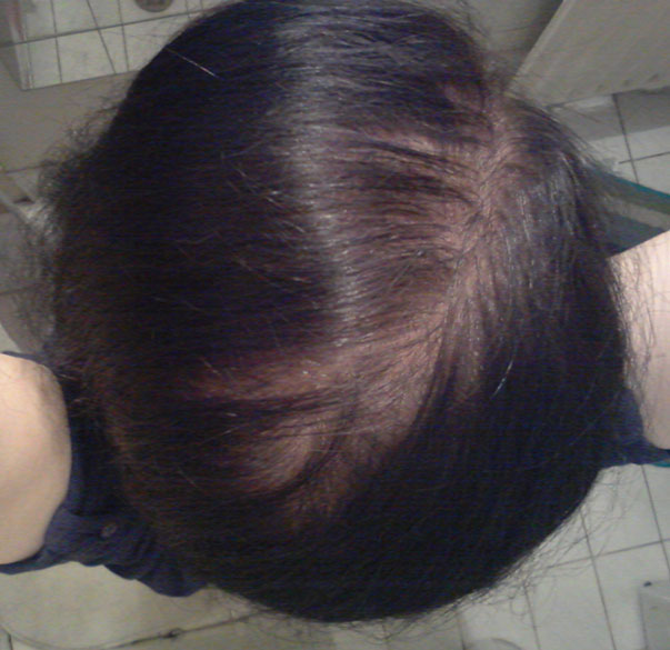 Ich vermute ja, es ist AGA, da meine Mutter ebenfalls seit ihren Zwanzigern darunter leidet. Nur hat sie nie so einen Kahlschlag am Hinterkopf erlebt... Was mir noch einfällt ist, dass ich in dem Jahr, bevor mir die Lücken das erste Mal auffielen, angefangen habe, meine Haare selbst zu färben (habe es vorher immer beim Friseur machen lassen), die Pille im Langzeitzyklus zu nehmen und ich für einen Zeitraum von neun Monaten ein Antidepressivum eingenommen habe.