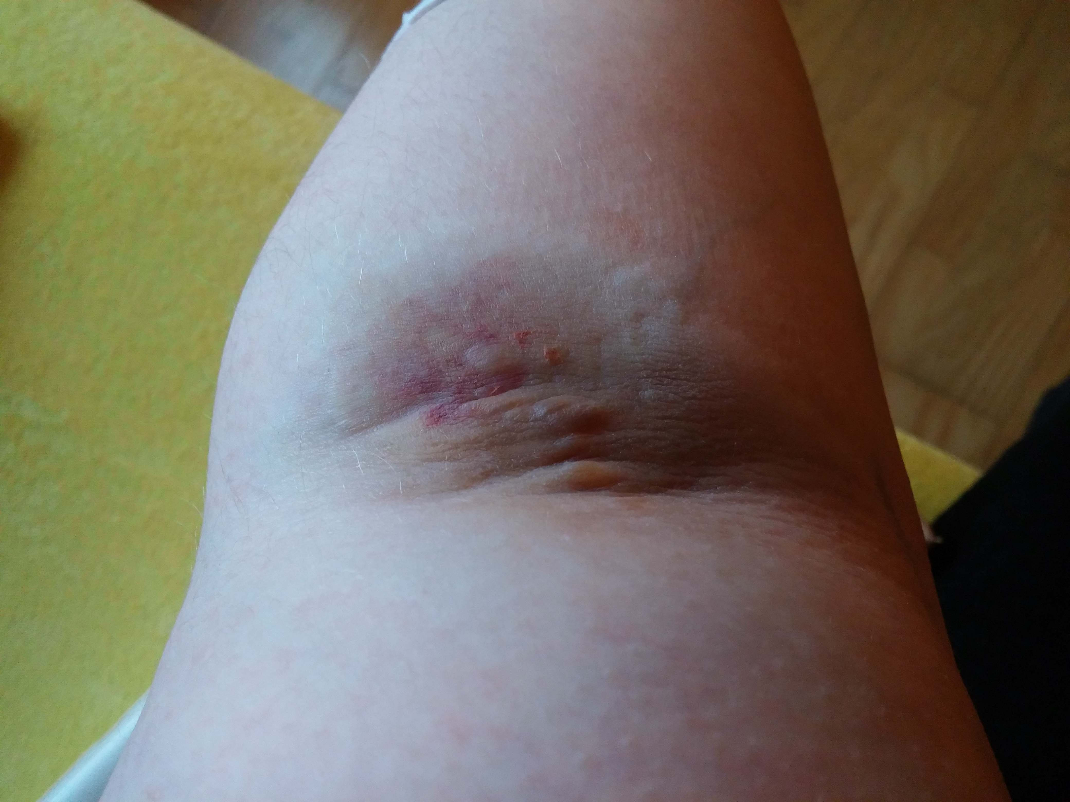 Dienstag geh ich zur BE wegen Ferritin, drückt mir mal die Daumen, dass das schön hoch ist, damit ich mir die nächste Infusion sparen kann (will nicht wieder so zerstochen werden:() Unten hab ich nochmal ein Foto von meinem Arm... tut immer noch weh; man sieht es nicht so gut, aber der Oberarm war auch ordentlich dick, sah aus und fühlte sich an wie Megamuskeln^^