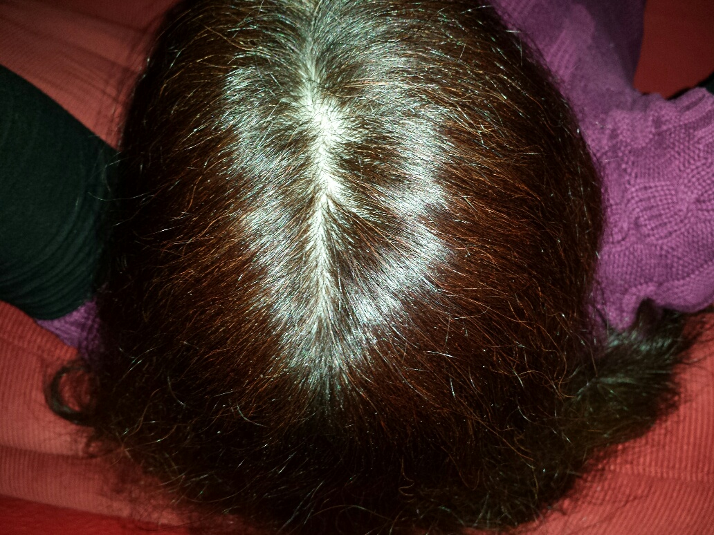 Ich bin jetzt 45 Jahre alt, weiblich und um meinen 40. Geburtstag, im Frühling 2010, fing alles an. Ich hatte bis dahin sehr dicke, lange Haare, Naturwelle und überhaupt keine Probleme mit den Haaren. Ich wurde immer sehr beneidet um meine schöne volle Haarpracht. Aber sie fingen an massiv auszufallen, begleitet mit einem Brennen und Jucken der Kopfhaut. Das habe ich erst mal einige Monate so hingenommen. Dachte ja auch, dass sich das schon wieder geben wird. Mir fielen über den Tag verteilt massig die Haare aus, das Kämmen morgens war eine Tortur, das Waschen, es waren 200 - 400 Haare. Da ich in meinem Alter auch färbe, ging da noch einmal gut was weg. Ich hatte einmal nach dem Waschen 499 Haare gezählt. Der Haarausfall war immer gleichmäßig, also keine Löcher oder Lücken.