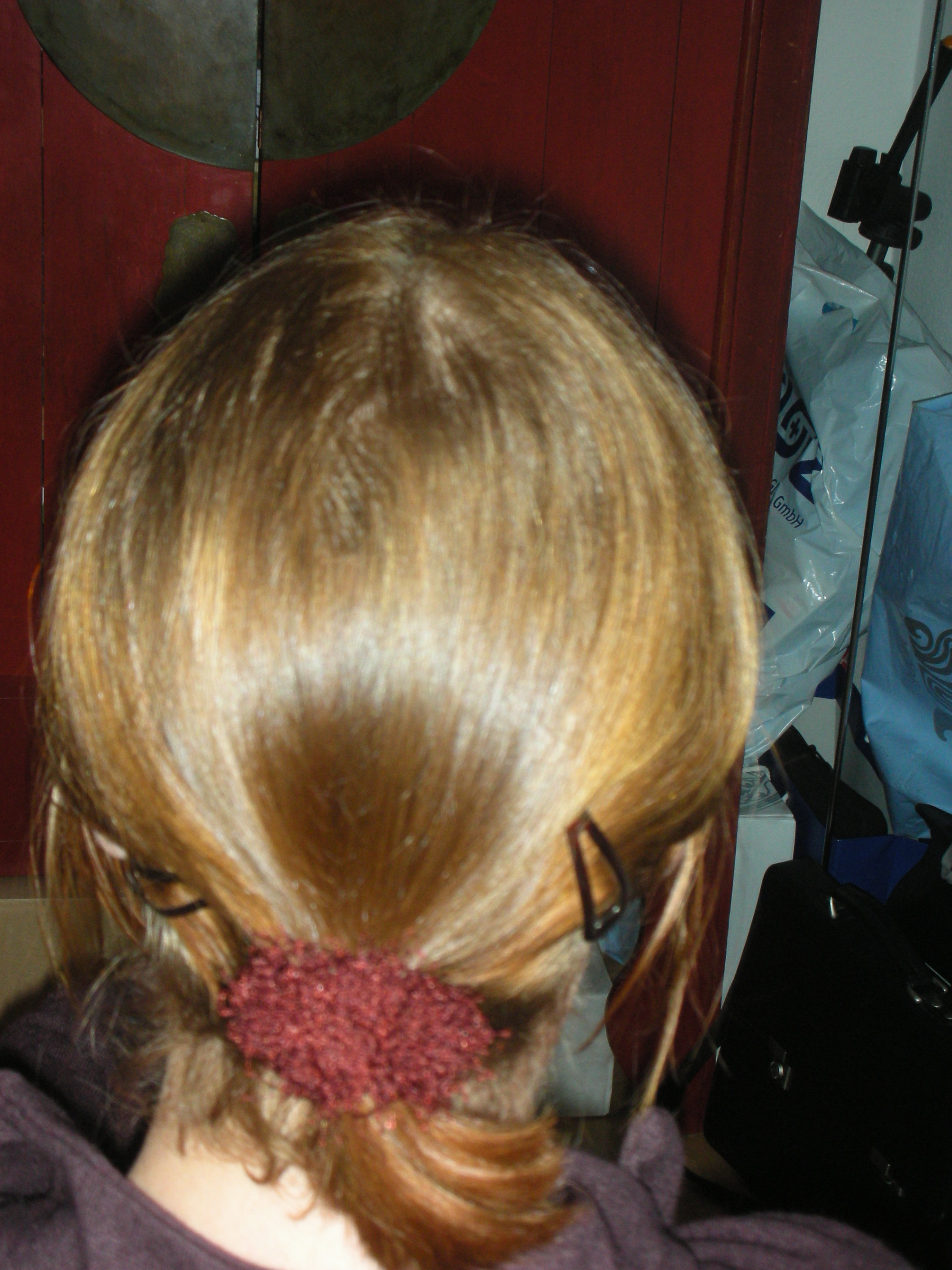 Da die Tresse vor allem in den ersten Wochen eng an der Kopfhaut anliegt, sollte sehr gut gespült werden, sonst können sich Entzündungen bilden. Es juckt momentan ein bißchen unter der Tresse, vielleicht hab´ich zuwenig gespült gestern.
