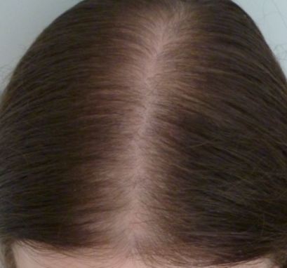 Ich finde das Bild ist gemäß Ludwig-Schema ganz typisch für AGA. Schön Lichtung entlang des Mittelscheitels. Die kleinen Härchen die man hinten sieht, kommen übrigens vom Priorin. Nur leider sind diese nicht so im Mittelscheitel gekommen.