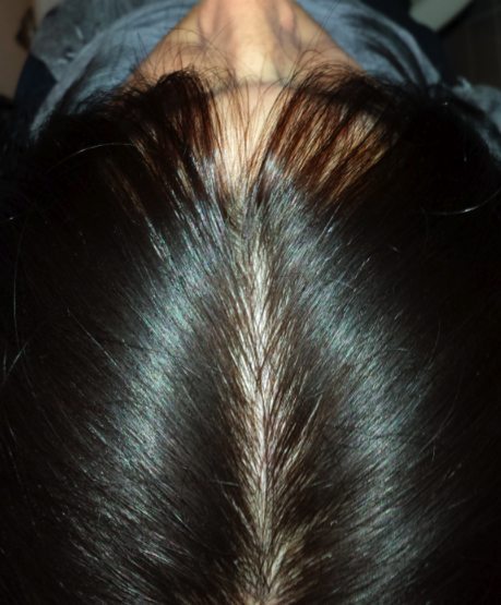 Okay... ich trau mich jetzt mal. Kostet mich viel Überwindung, aber damit ihr mals seht, jetzt der schlimmst Stand, den ich je hatte und der in ein paar Monaten... seht ihr, der Scheitel ist gar keine Linie mehr. Ist mit Blitz und trockenem Haar fotografiert