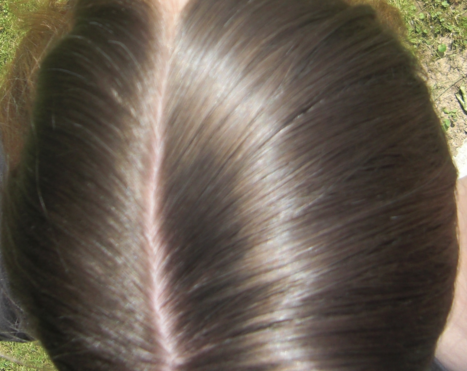 Ich habe heute Fotos in praller Sonne gemacht von der es ja in den letzten Tagen wenig gab um zu schauen wie mein Scheitel (der mir immernoch Sorgen bereitet) in der Sonne aussieht.