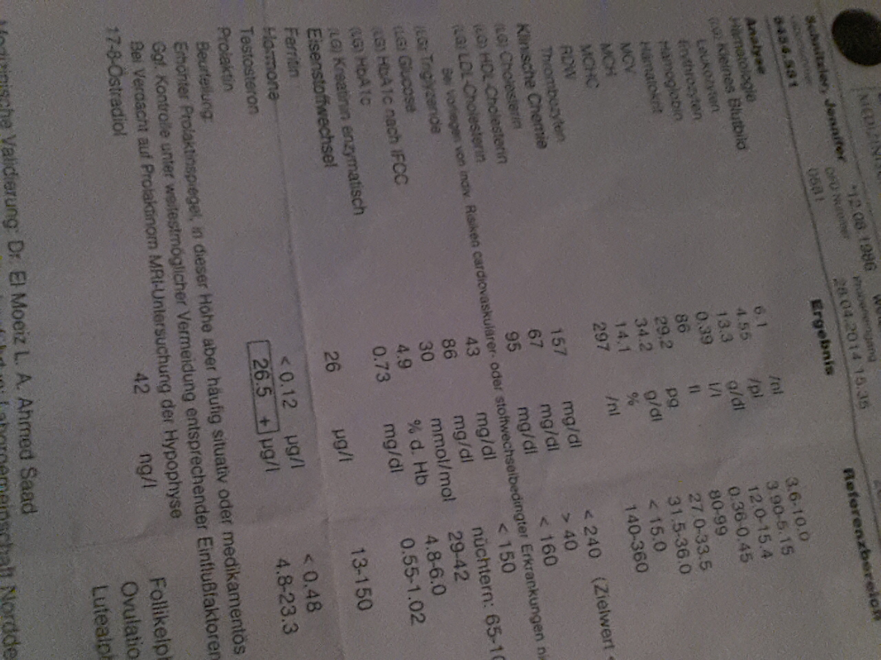 Wenn der Arzt nicht weiß, in welcher Zyklusphase die Blutabnahme war - und du selbst auch nicht - bleibt dir nur übrig, den Wert nochmal machen zu lassen.