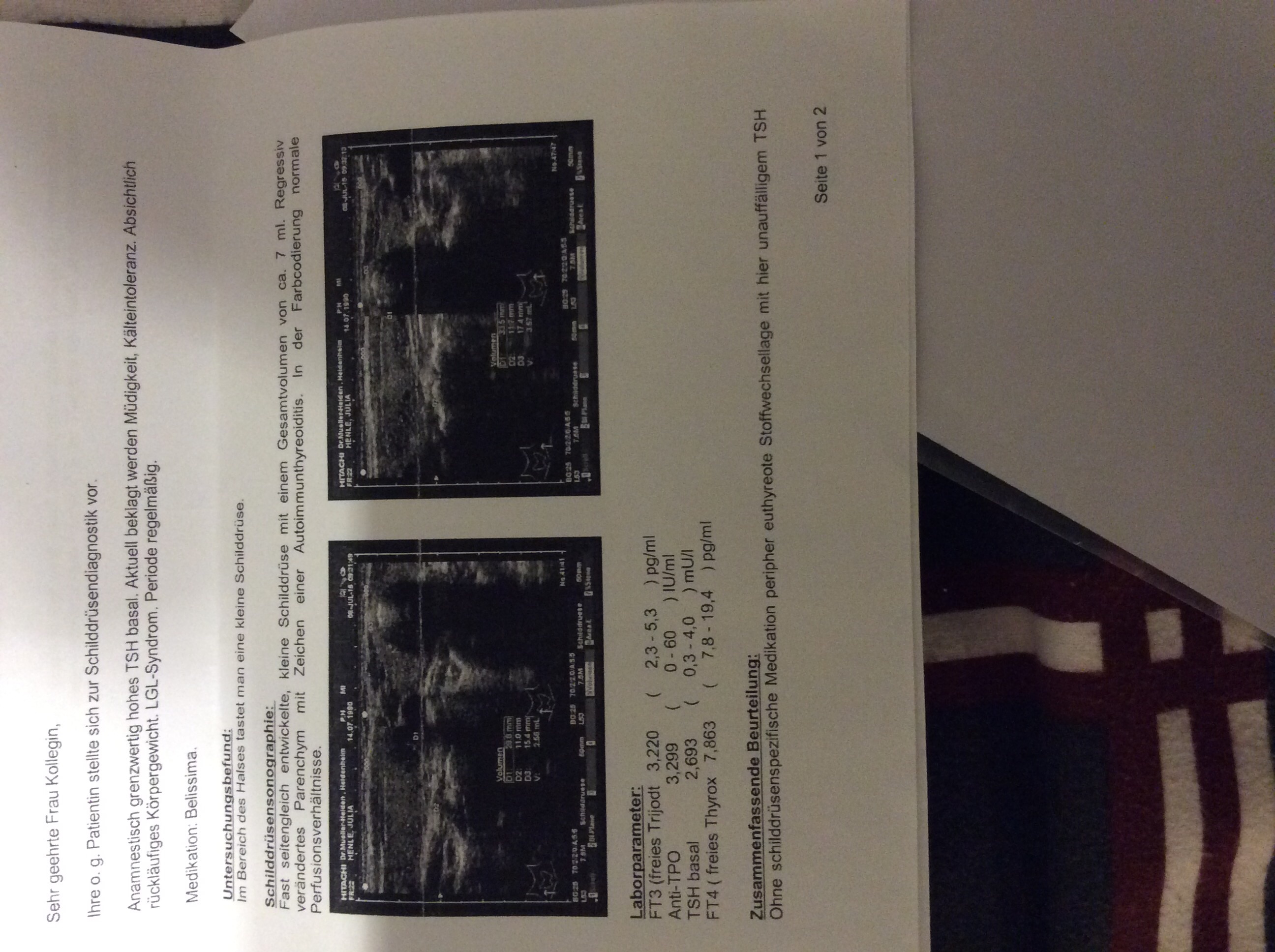 Mein jetziger Endo ist auch beschi****... ich hatte n TSH von 1,8 nach dem Pille absetzen (vorher 0,8!) das ist n ganz schöner Unterschied. Von den freien Werten mal gar nicht zusprechen.....