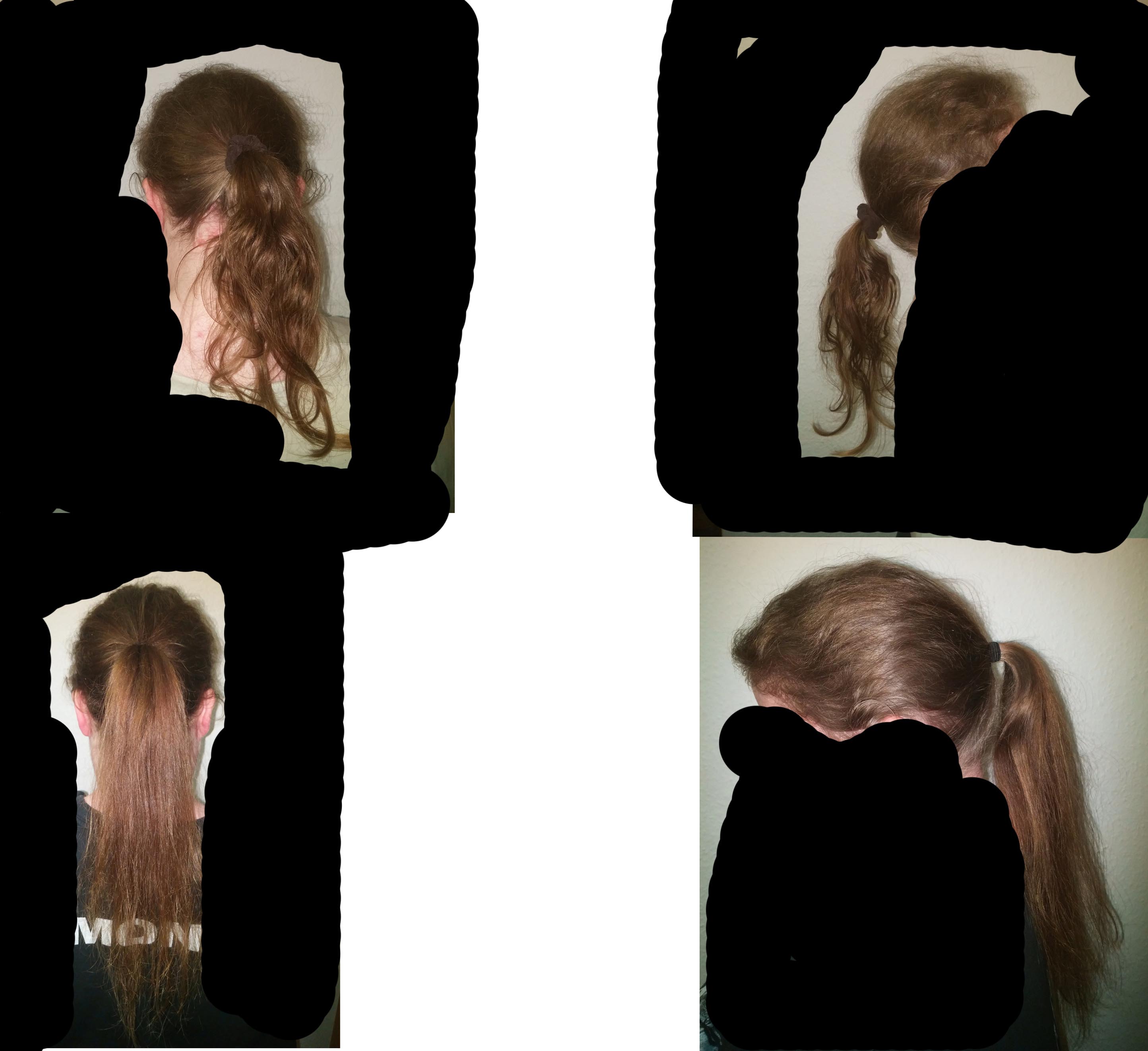 Hab mal ein Foto angehangen... traurig wie viel Haare am Ende von 2 Jahren Haarausfall noch übrig sind, oder?.. Soll heißen: Das ist das Haar, was seit den 2 Jahren nicht ausgefallen ist... alles andere ist kürzer, also neu...