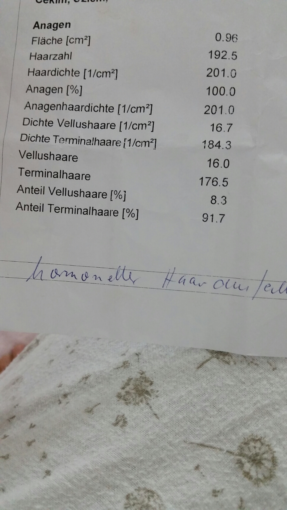 Ich bin 29 jahre alt, und leide seit November 2014 an schlimmen haarausfall. Es kam auf einmal Und meine haare waren aufeinmal sooo dūnn und kraftlos und zerbrechlich. Also ich merkte irgendwie total das ich weniger haare hab. Daraufhin gimg ich zu einem Hautarzt..er machte ein trichoscan und untersuchte mein Blut auf Schilddrüse und eisenmangel. Schilddrüse war ok...eisenmangel war ferritinwert bei 16. Er schrieb mir ferro sanol 100mg auf ich solle das 2 x täglich nehmen..was ich bis jetzt auch tat. Und das Ergebnis vom trichoscan war das es hormonellbedingter haarausfall ist. Er schrieb mor noch ein Haarwasser auf welches Östrogene enthält was ich mir jeden aben auf die Kopfhaut einmassiere..es wird immer schlimmer. Guckt mal bitte...was eint ihr? Bitte antwortet