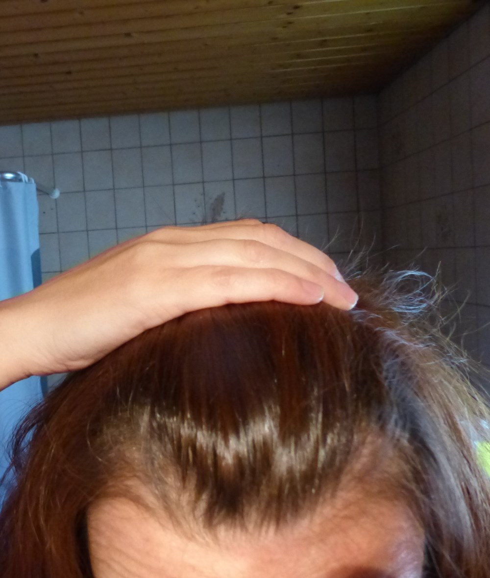 Meine Mutter hat sehr lichtes Haar bekommen, aber nur am Oberkopf / Scheitel.