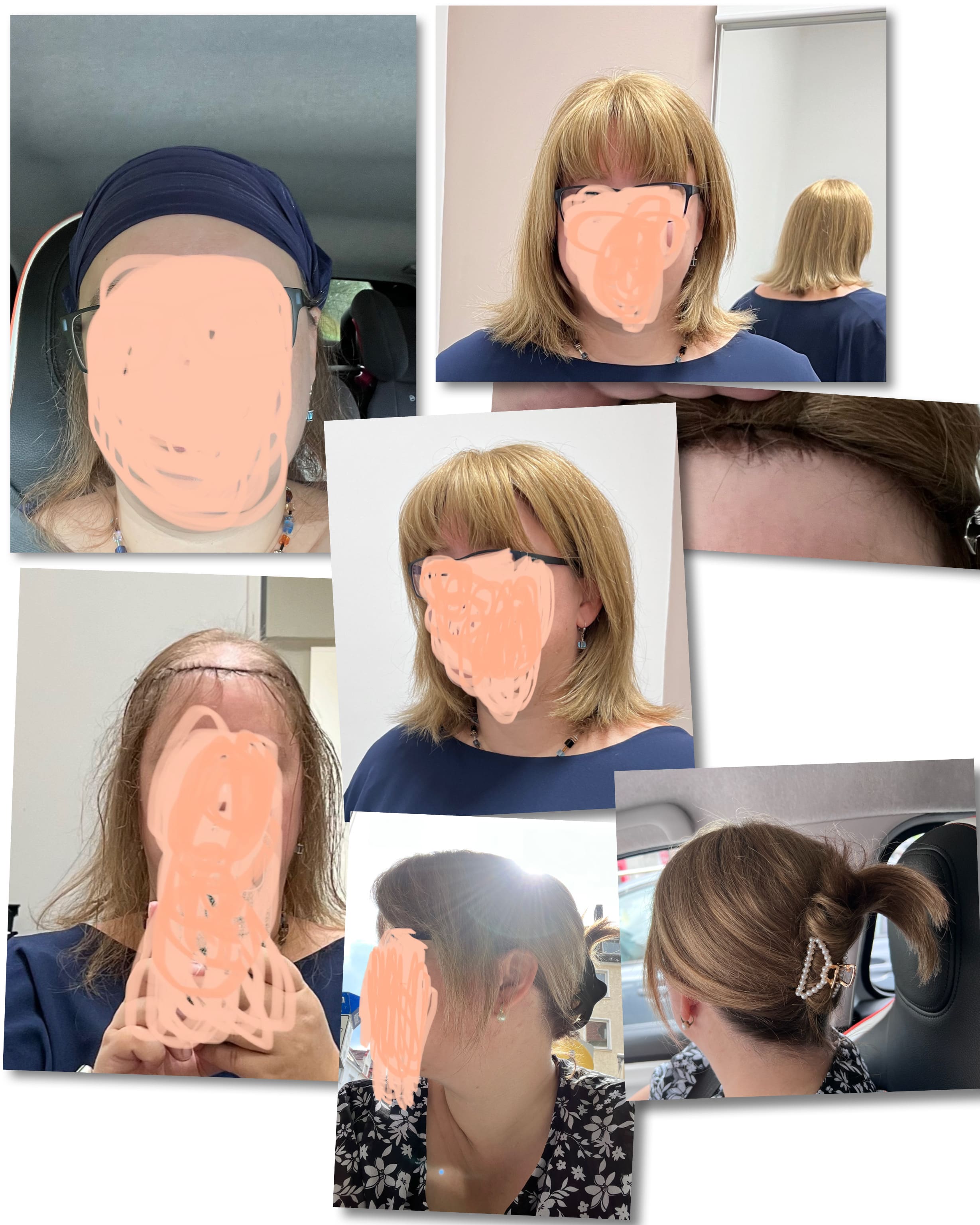 Seit über 15 Jahren gibt es mich nur noch mit Tuch auf dem Kopf. Ich durfte sogar meine Ausweisfotos mit Tuch machen. Aber mittlerweile waren die Haare so dünn, dass ich selbst mit Tuch gelitten habe.