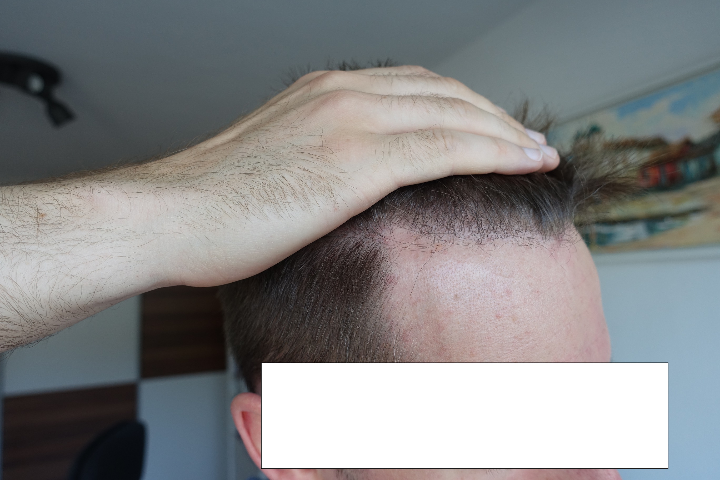 Mit den Ekzemen sind ja wie beschrieben einige Haare ausgefallen. Ich hoffe mal, dass dies keinen Einfluss auf das Endresultat haben wird. Die Haare die mit den Ekzemen rausgegangen sind, waren zumindest deutlich kürzer, als die die nach der HT direkt sichtbar angewachsen/weitergewachsen sind.