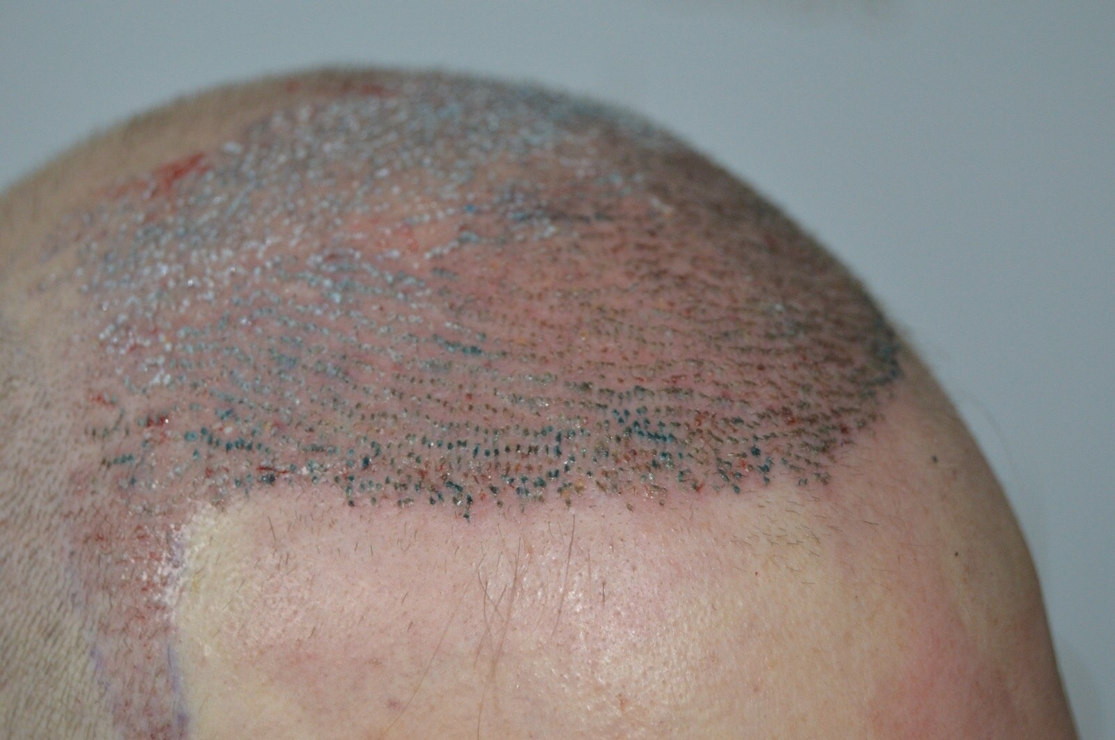 Einzig unzufrieden bin ich mit den Teilen des Kopfs wo nicht operiert wurde. Da sieht es relativ leer aus. Noch mehr am Spender rumzuräubern ist vielleicht keine gute Idee und ich bin auch nicht sicher, ob ich die ersten Wochen nach der OP noch einmal durchleben will..