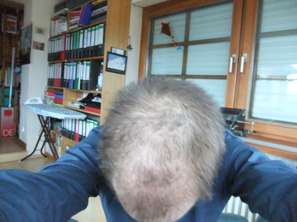 Jetzt denke ich zum ersten mal, dass ich gute haare habe. von vorne könnte ich jetzt keinen kritikpunkt ausmachen. von oben merke ich selber halt, dass im nw5 bereich ein kleines bisschen die kopfhaut mehr zu sehen ist, als im donor. wobei man auch im donor mit haar-wachs (was ich zum stylen benutze) die kopfhaut genauso sieht. Ganz ehrlich kann ich daran eben noch kritik an meinen haaren festmachen. aber ich weiss auch, dass niemand in der welt dadraussen das sieht , wenn er von oben auf meine haare guckt. (z.b. in der vorlesung die leute eine reihe über mir). natürlich würdet/werdet ihr alle an meinen nächsten fotos, wenn ich auch gestylte fotos zeige, sehen, dass ich eben keine vollkommenen haare habe. Aber ich seh mich jetzt so, dass meine haare genauso gut/schlecht sind , wie von jedem menschen, der irgendwie haarausfall bekommen hat. als beispiel dient da z.b. mein bruder, der an der haarlinie so langsam probleme bekommt. ich bin nicht neidisch auf ihn. ich seh es so, dass beides "gleich gut" ist.