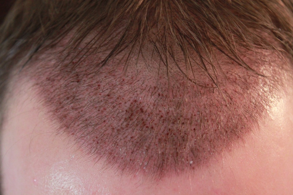 So nun ist meine Kopfhaut im transplantierten Bereich nach fast 10 Tagen PostOP wieder ziemlich sauber und natürlich. Werde mir morgen die Klammern ziehen lassen und anschließend meinen Friseur besuchen und mir alle Haare auf die Länge der transplantierten Haare schneiden lassen, um wieder ein gesellschaftsfähiges Aussehen zu erlangen.