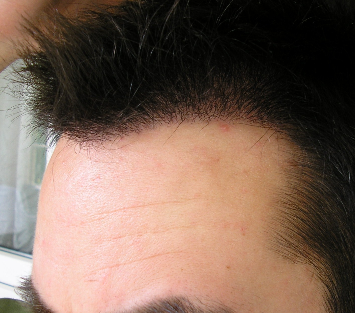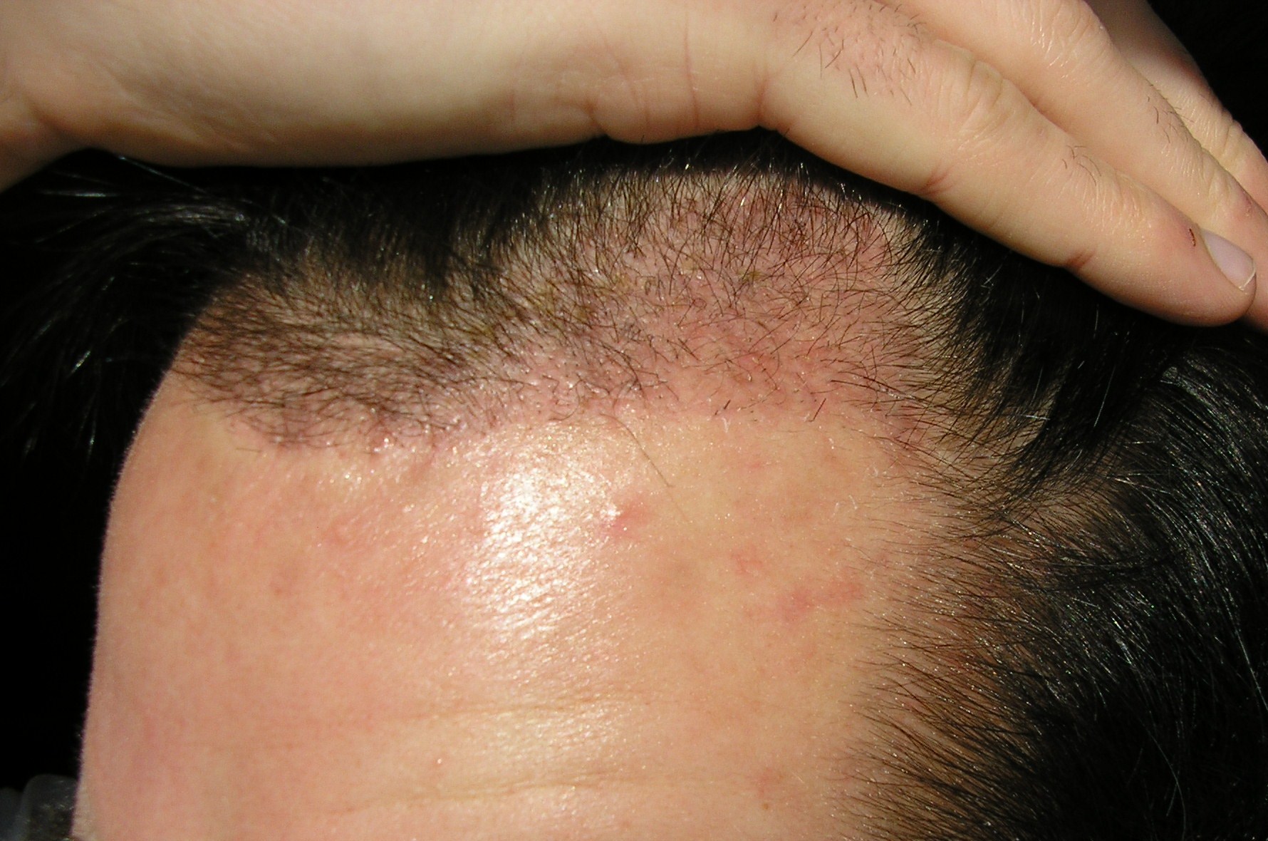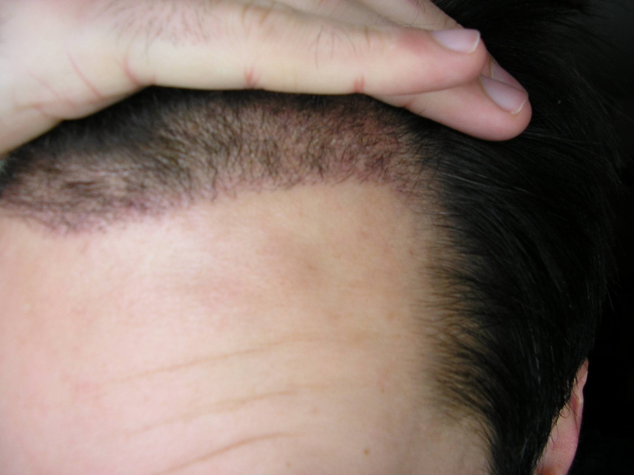 hier noch das bild von der narbe, direkt nach dem haarewaschen. leider mit blitz, hatte ihn auf automatisch gestellt. aber ist ja egal.