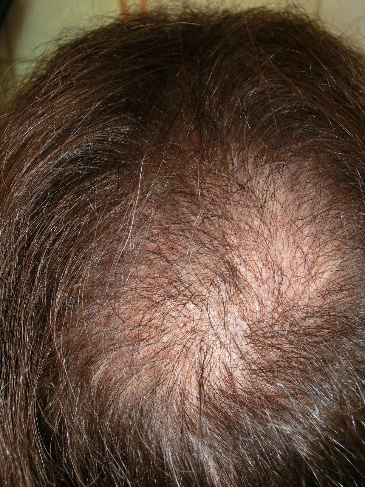 Leider ist es bei mir halt so das die Haare von der Stirn weg frontal bis zum Hinterkopf sehr sehr licht und schütter geworden sind.
