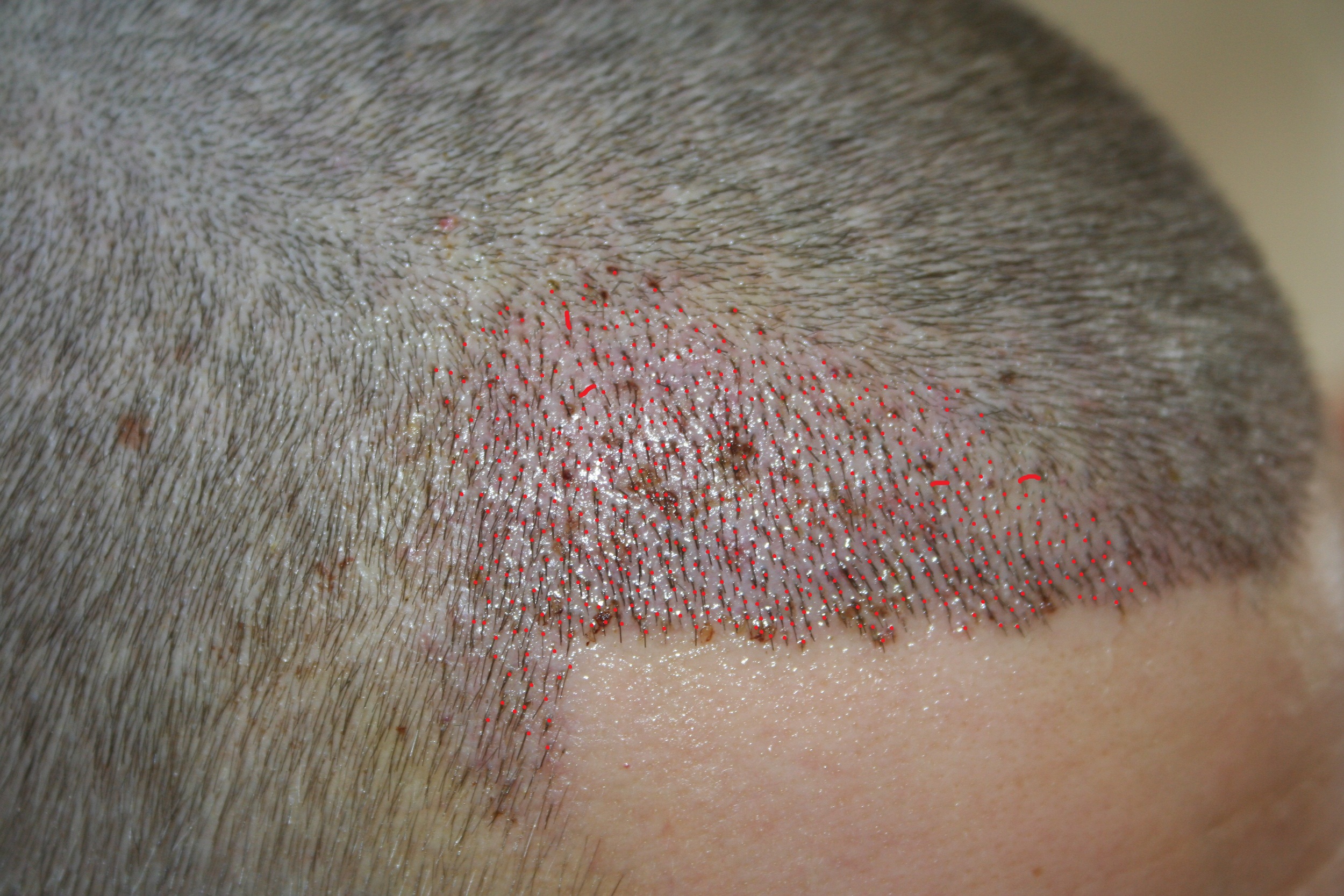 gezeigt, der für die kleine Fläche sehr viele Grafts (=Haarwurzeleinheiten?) erhalten hat. Auch hier wird