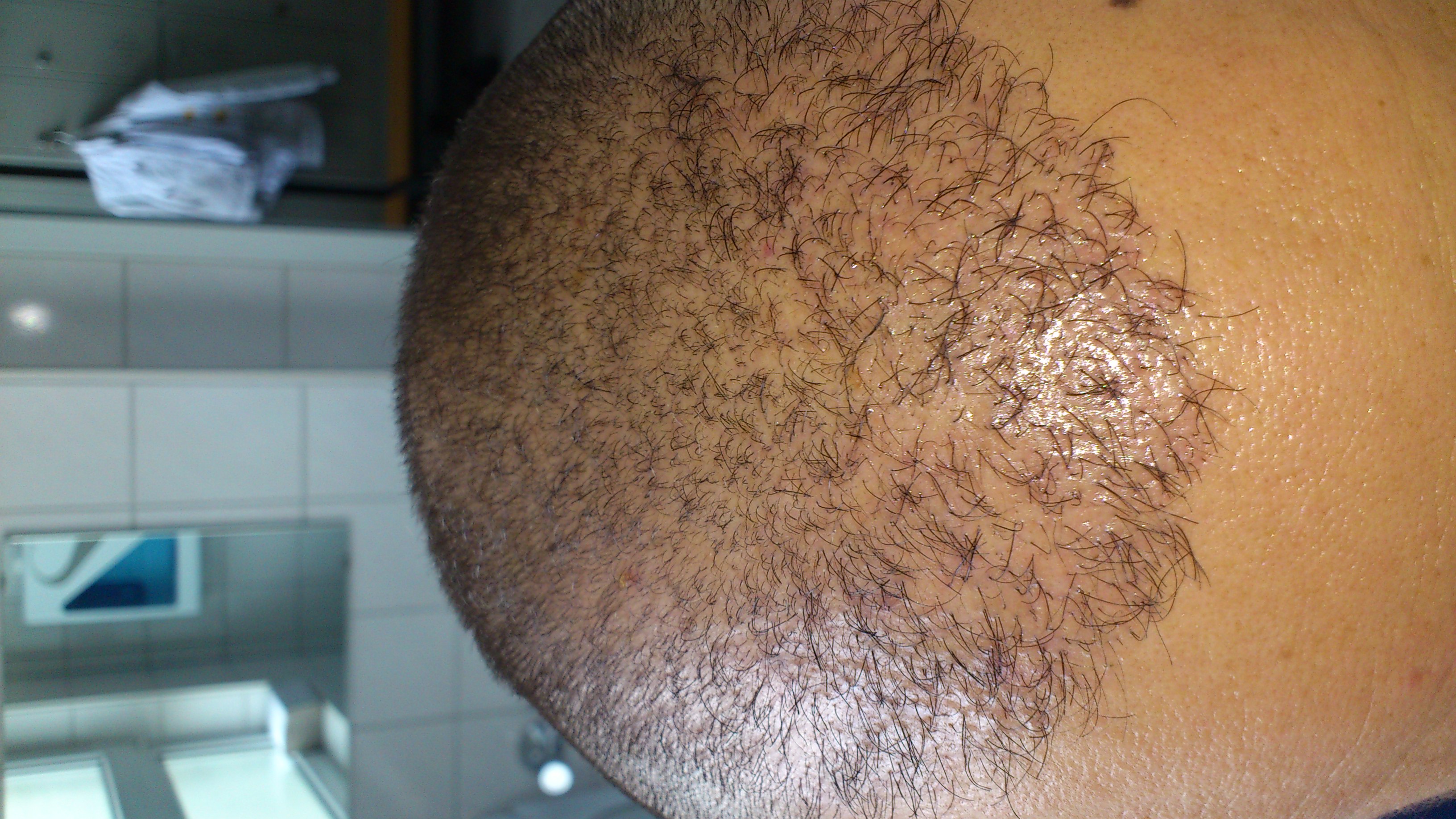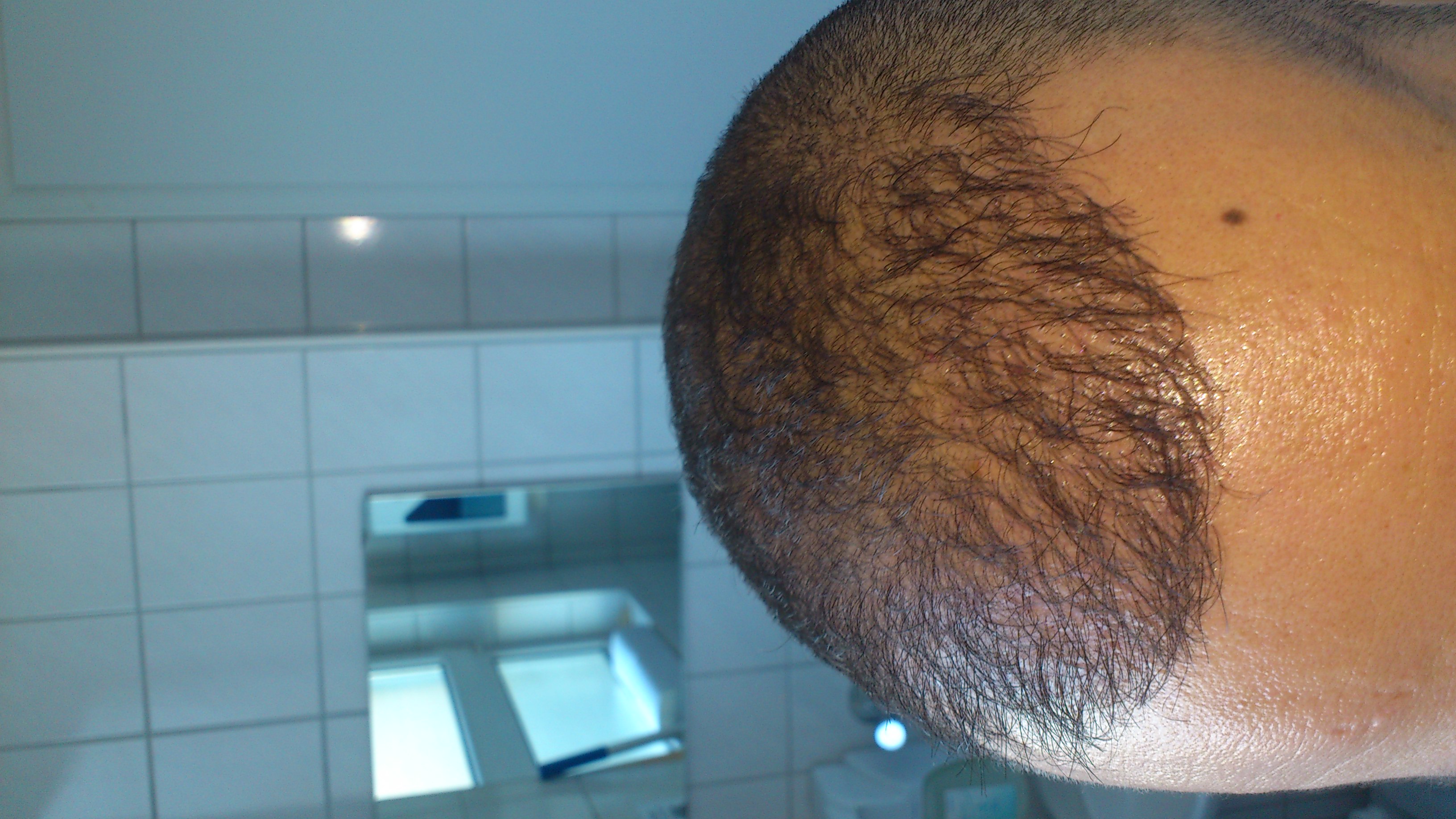 Ich finde für ein Zwischenergebniss sieht das schon ganz gut aus, die transplantierten Haare sind schon wesentlich dicker und Dichter geworden.