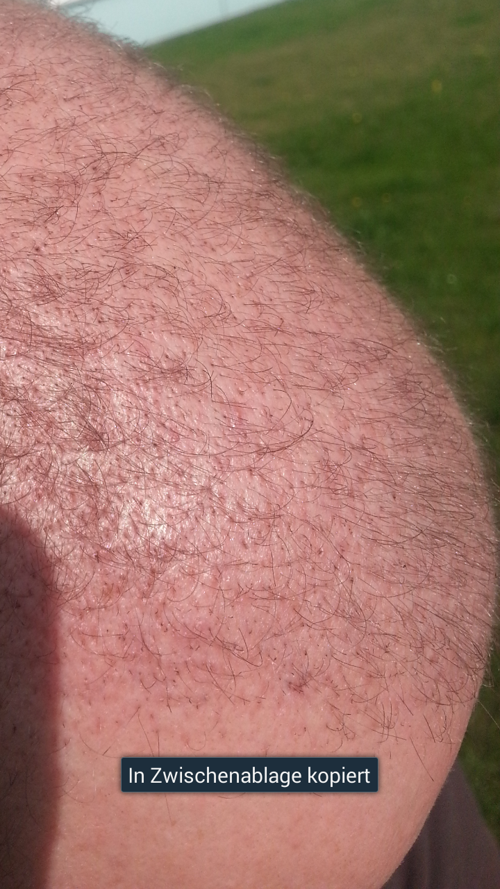Es sieht zumindest nicht so aus als seien bei dir noch weitere transplantierte Haare ausgefallen. Schneidest du wöchentlich deine Haare?