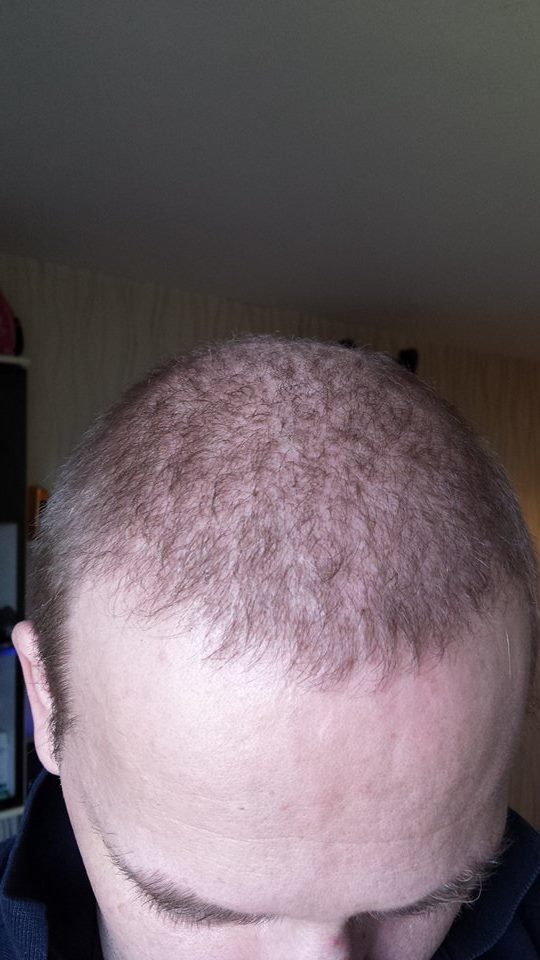 Ich hab mir die Krusten nach 8 Tagen abgepidelt in der 2 und 3 Wochen sind die Haare ausgefallen seid da an Wöchentliche zunehmende Dichte.