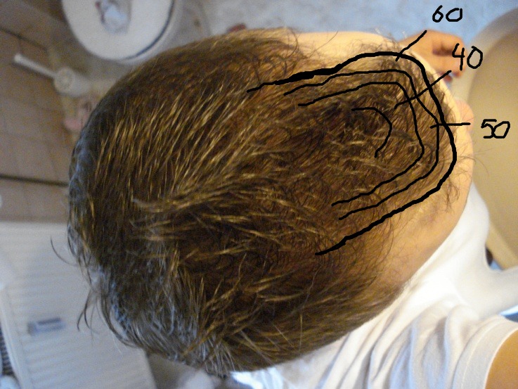 Der markierte Bereich ist optimal, die Haarlinie ist gut überlegt.