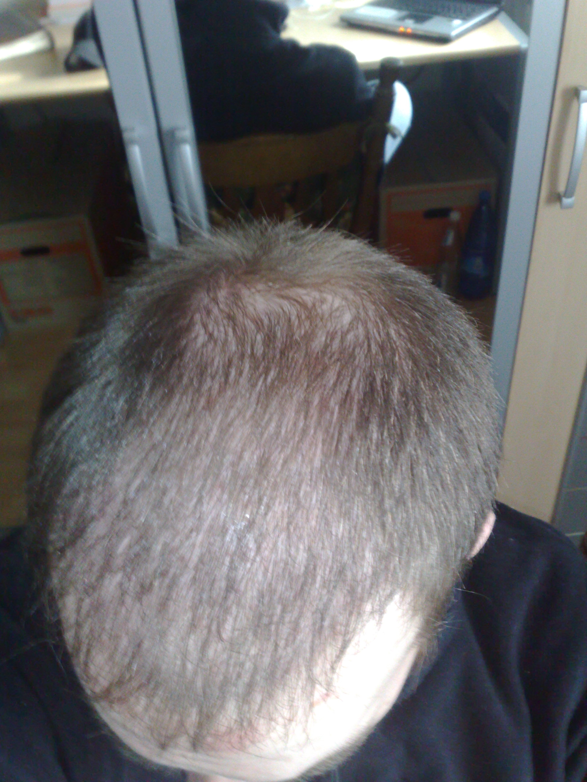 hier sind nun die versprochenen Bilder. Hab die Haare jetzt länger. Finde es ist ein wenig besser geworden. Aber nochnicht befriedigend. War vor einigen Wochen bei Heitmann. Er meint für acht Monate ist das ok. Es sei auch noch zu früh um sich ein Urteil zubilden. Bei manchen kommt es früher, bei manchen später. Er bat mich nach zwölf Monaten nochmal zukommen. Und falls dann immer noch nichts passiert ist wird er sicherlich nochmal etwas machen.