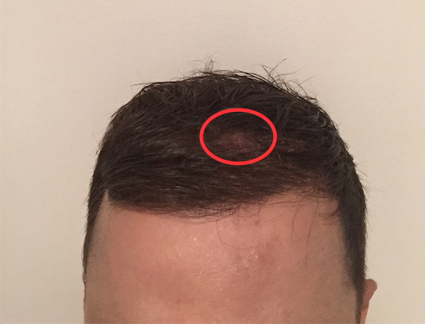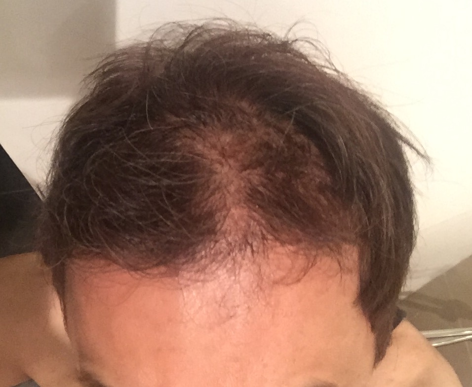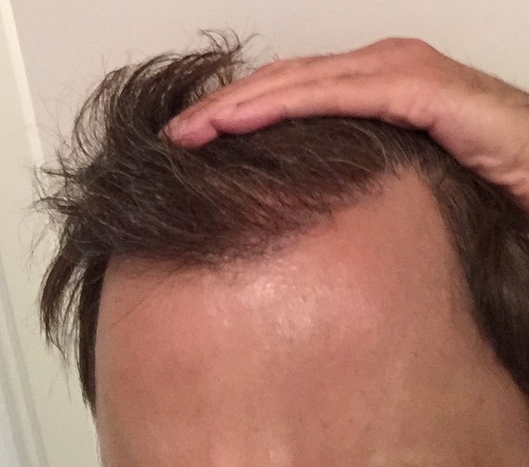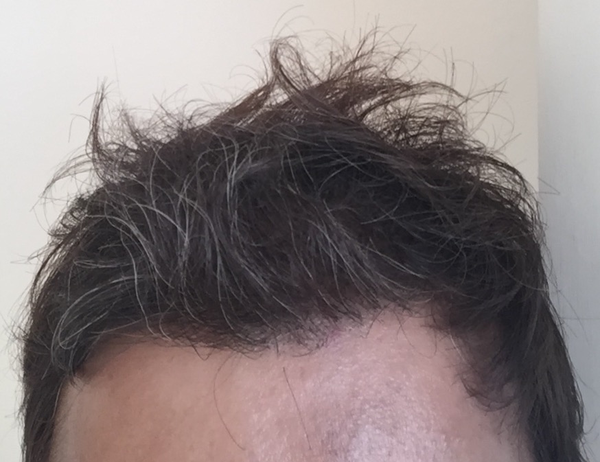 Genau an der Stelle, wo es noch kahl aussah, wachsen nun Haare, zwar noch nicht überall, aber trotzdem bin ich voller Hoffnung, dass das Ergebnis noch etwas besser wird.