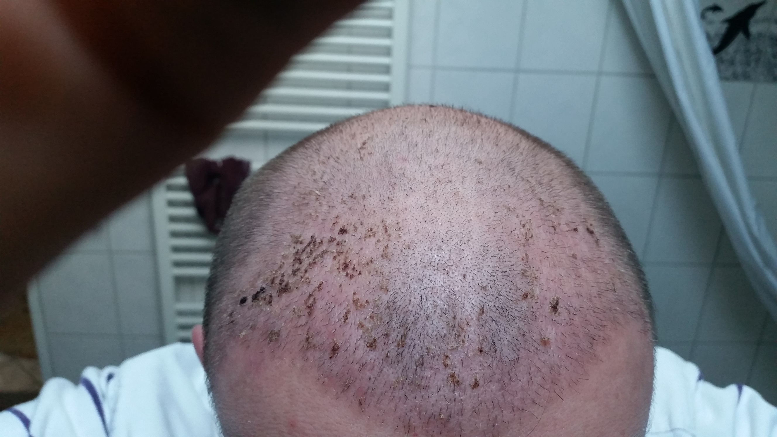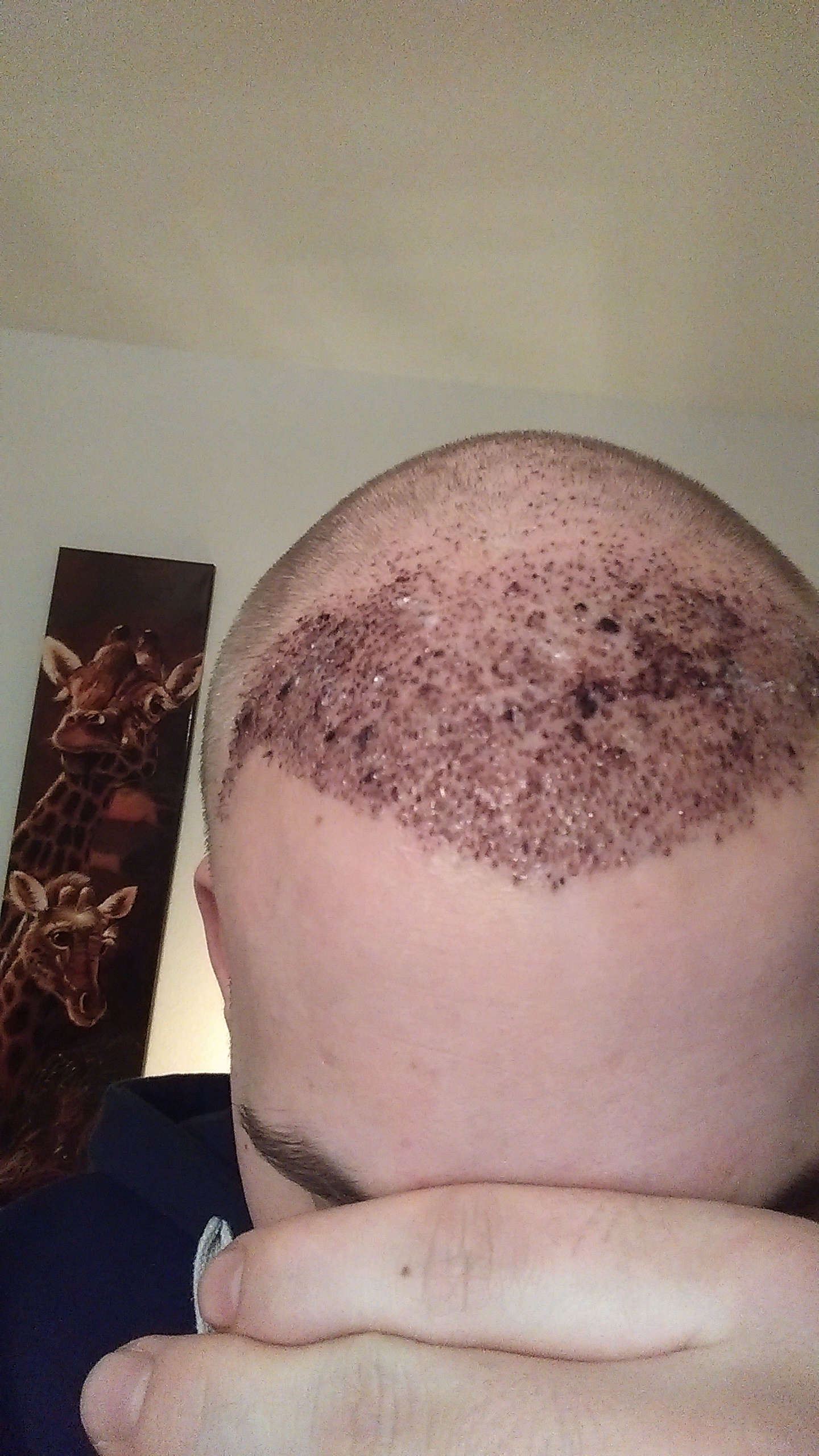 Heute bin ich 18 Tage Post-OP und habe mal neue Fotos hochgeladen und muss sagen, ich bin bisher zufrieden, es sind auch schon die meisten Haare ausgefallen, was aber ja normal ist: