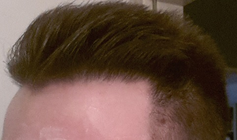 Ich bin der Meinung, dass die Haarlinie weit davon entfernt ist, optimal zu sein. Der Haaransatz ist nach wie vor sehr hoch, ebenso sind die Schläfen im Vergleich zur Front sehr weit hinten.