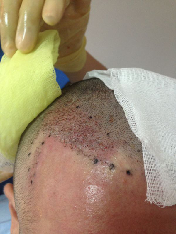 Jedenfalls müsste diese großflächige Kruste möglichst bald vom Kopf herunter aber wenn ich dies zuhause täte, dann bestünde das Risiko dass ich die frischen Grafts hinauszöge. Dr. Keser schlug vor dass ich noch zwei weitere Tage in Ankara bleiben solle und er das Entfernen der Krusten übernehmen würde. Hierfür sei es notwendig dass ich die folgenden Tage bei ihm in der Praxis verbrächte. Er würde mir dann zweimal täglich den Kopf waschen und die Krusten immer wieder großflächig eincremen und abtupfen. Dadurch sollten sich die Krusten aufweichen, sodass er sie am letzten Tag entnehmen kann. Ich musste an dieser Stelle nicht lange überlegen, selbstverständlich buchte ich meinen Flug auf Samstag um. Ich hatte nicht derart viel Geld und Mühen auf mich genommen um den bisherigen Behandlungserfolg nun durch falschen Geiz oder Heimweh zu gefährden.