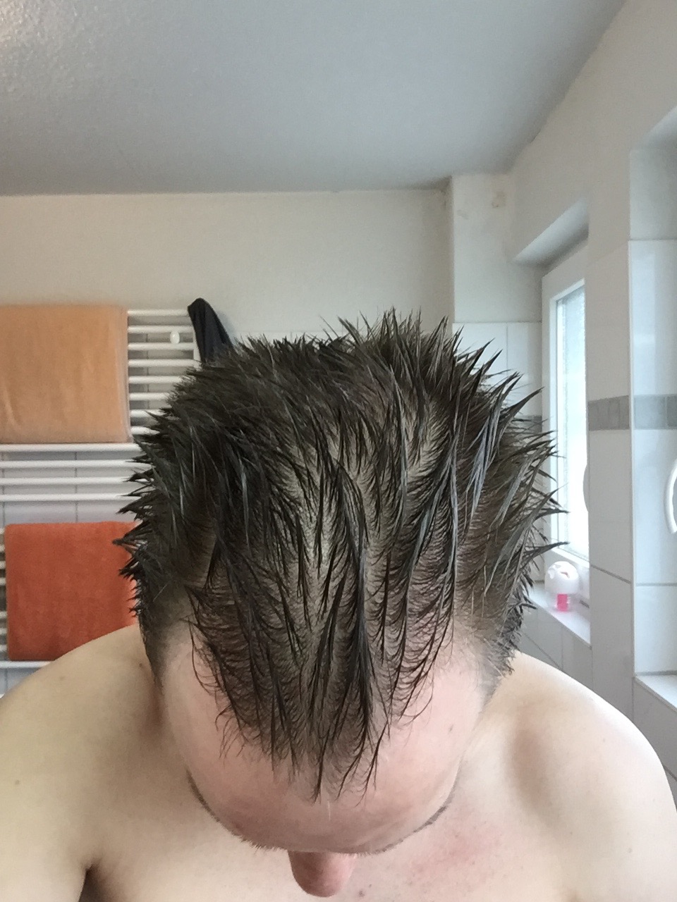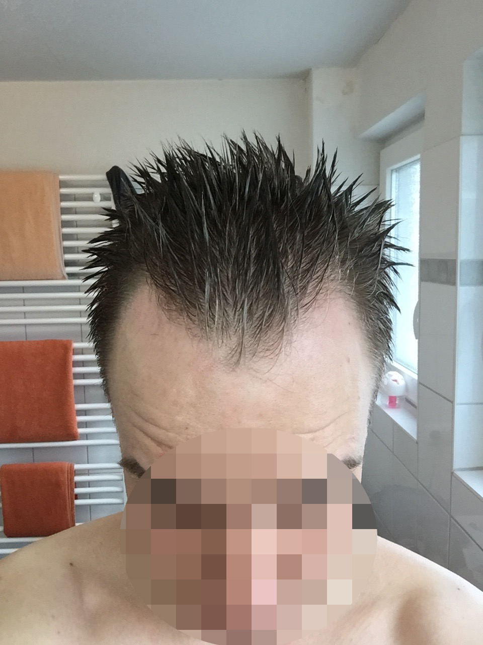 meine Haarstatus sehe ich aktuell als sehr kritisch an. Ich schätze mal mindestens NW3?